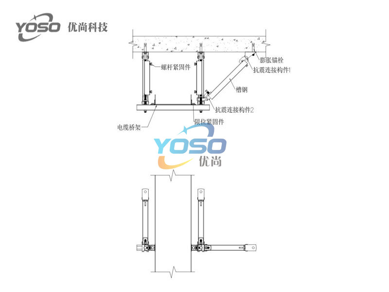 電纜橋架側向+縱向抗震支吊架B